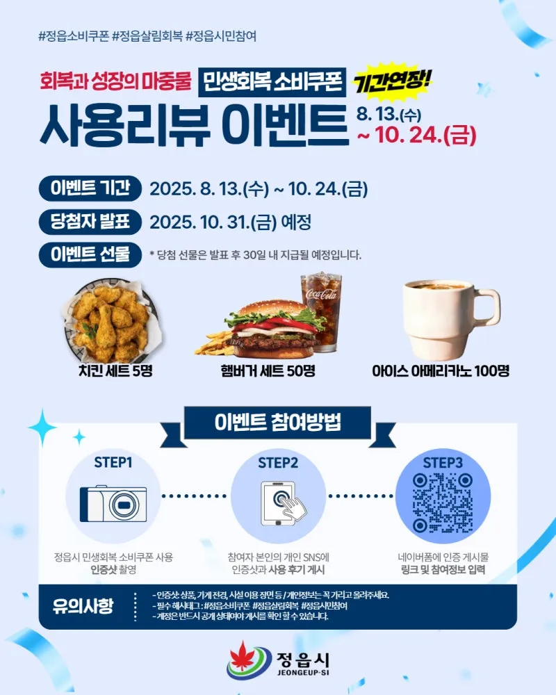 [정읍시] 민생회복 소비쿠폰 사용 인증 이벤트 기간연장!