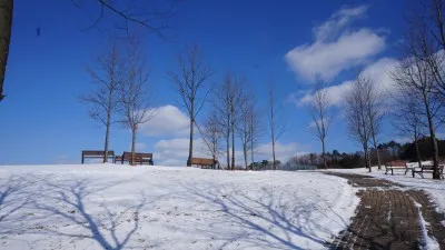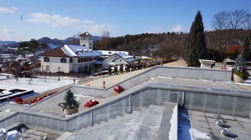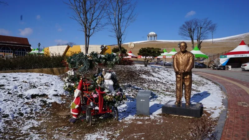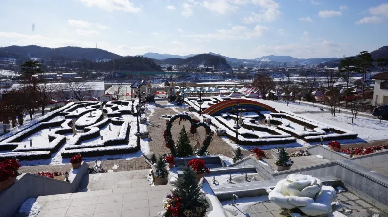 멀리 임실치즈&식품연구소가 보이는데요. 그 앞에 장미공원이 있습니다. 지금은 날씨가 추워 장미를 볼 수 없지만, 이곳에 다양한 체험존이 있습니다. 가족 트리 만들기, 화덕 피자 만들기 등 가족, 친지, 연인들을 위한 체험 공간이 마련되어 있어서 참여해 보시면 좋겠죠.
