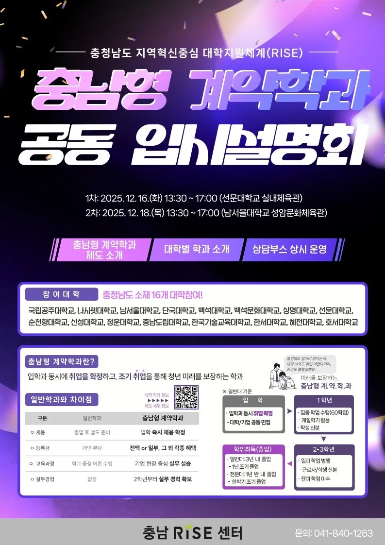 충남형 계약학과를 한자리에서 모두 만나볼 수 있는 공동 입시설명회가 곧 열립니다!