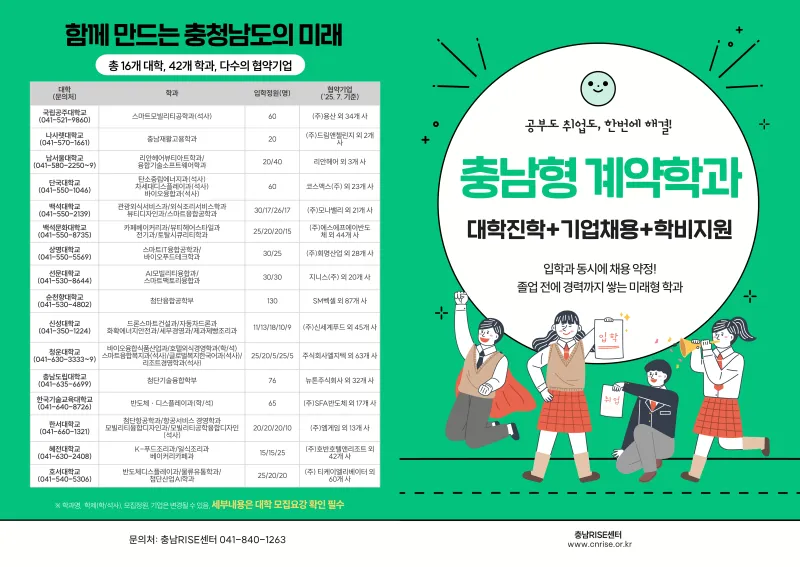 청년 여러분의 빛나는 미래를 충남형 계약학과와 함께 설계하시길 바랍니다!
