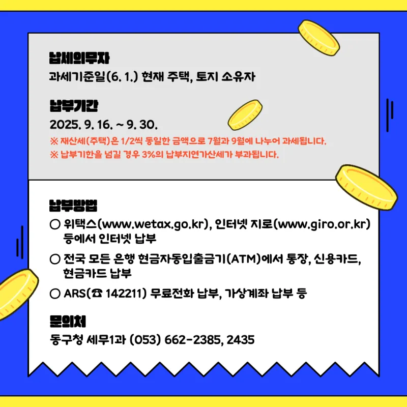 재산세 납부 대상자라면 꼭! 기한 내에 납부하세요💰
