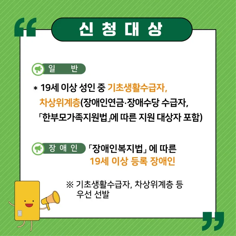 ▶일반 : 19세 이상 성인 중 기초생활수급자,