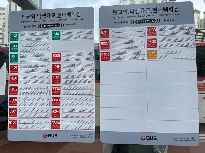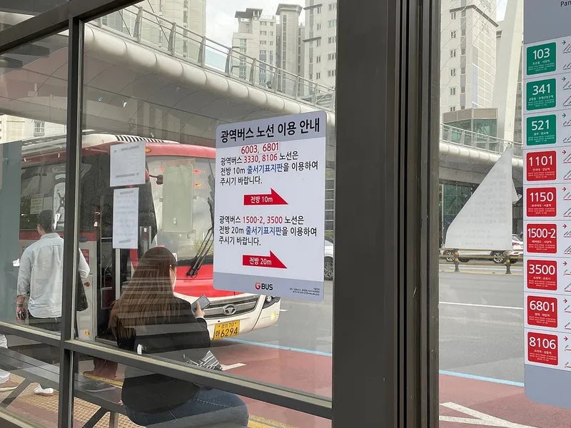 안내가 되어 있고 관련된 버스 번호가 적혀있습니다!