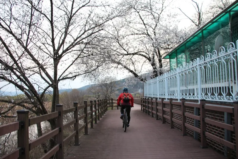 한적한 데크길따라 벚꽃향기 맡으면서 자전거를 타는 매력이 있습니다.