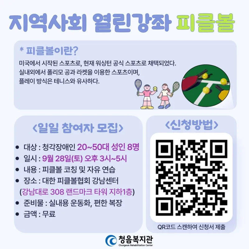 [무료] 2024년 지역사회 열린강좌 '피클볼' 일일 참여자 모집