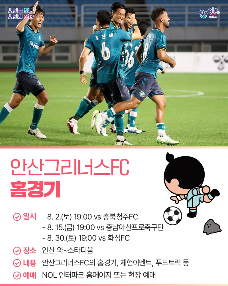 ✅ 내용 : 안산그리너스FC의 홈경기,