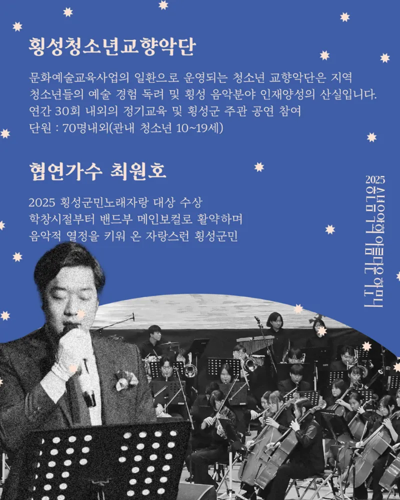 횡성청소년교향악단, 카더가든, 노라조, 쥬뗌므, 최원호(2025 횡성군민노래자랑 1등 수상자)