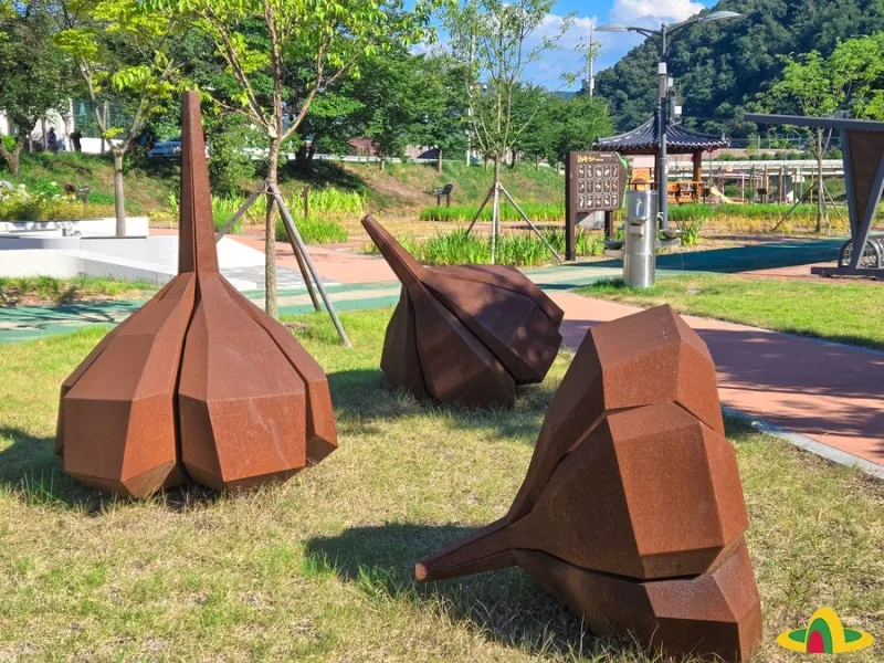 공원의 가장 큰 특징은 앞에서 이야기한 대로 마늘 조형물이라 할 수 있습니다. 심지어 화장실도 마늘 모양이에요! 처음 이곳을 접했을 때 정말 재미있고 기발한 아이디어로 조성했다는 생각을 했습니다.