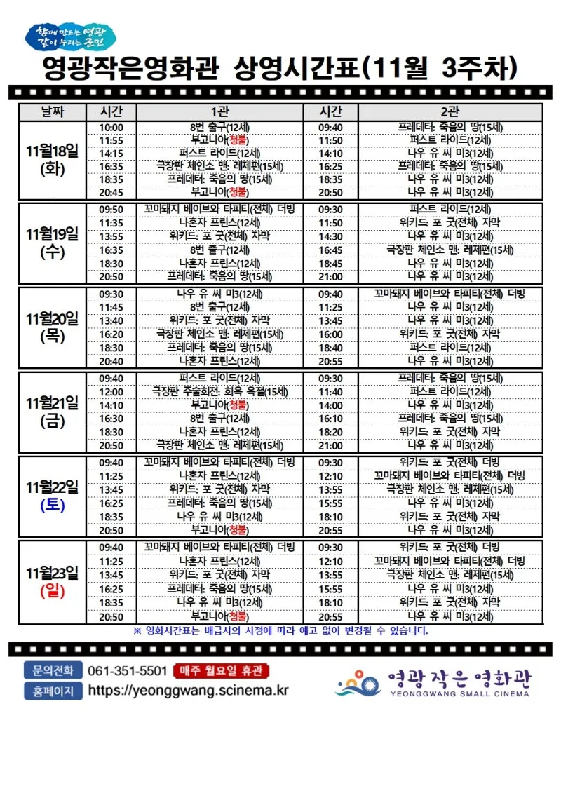 ????️ 영광 작은영화관 11월 3주차 상영시간 안내