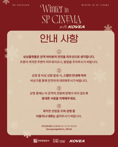 2) 상영 중 비상 상황 발생 시, 스탭의 안내에 따라