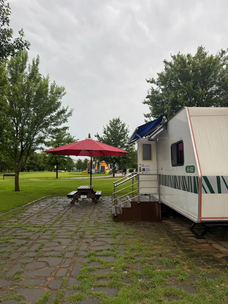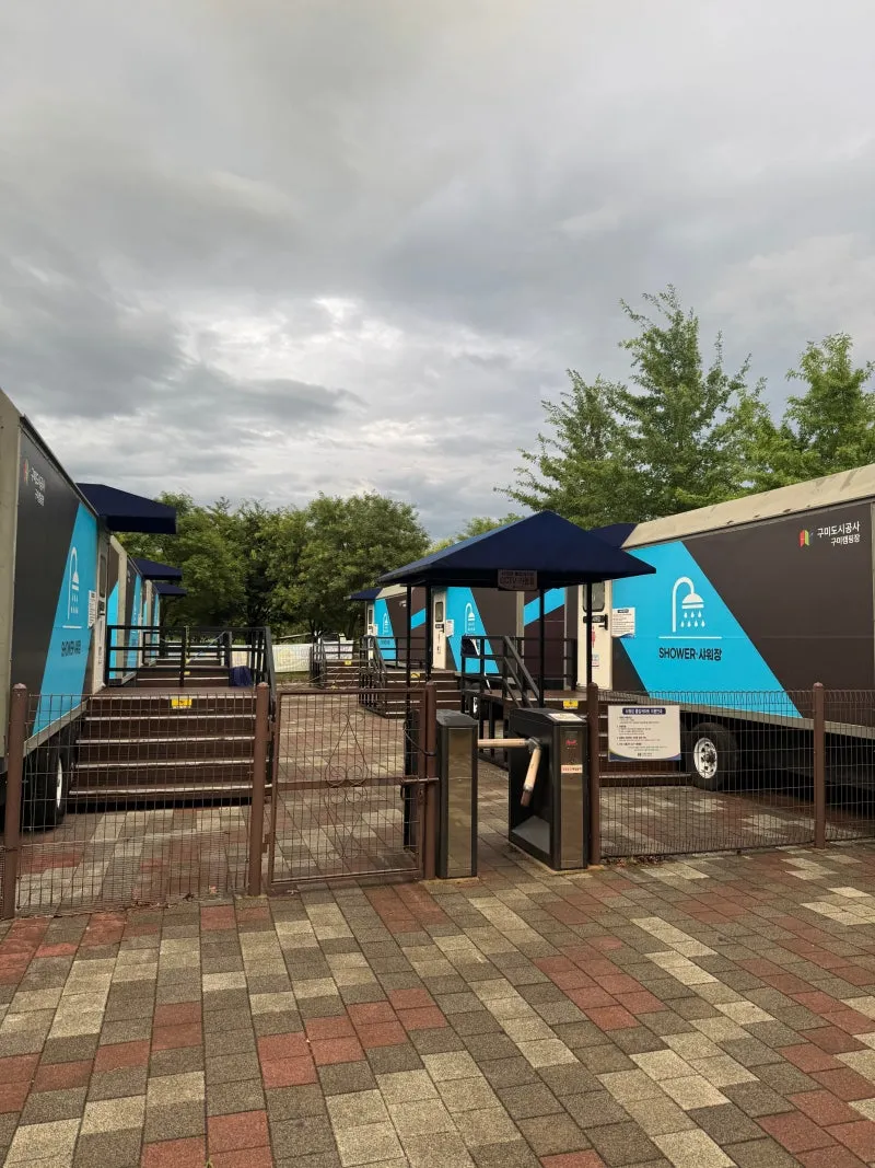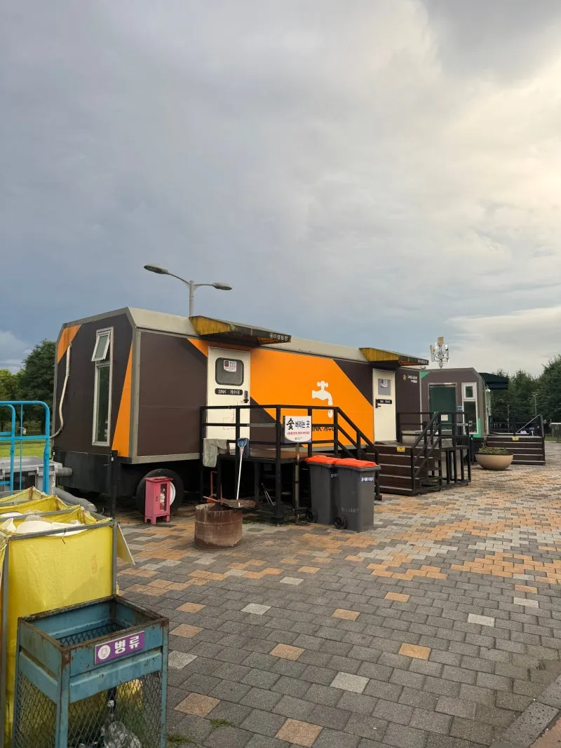 차량 옆 텐트 설치 가능, 전기 사용 가능 데크존 운영