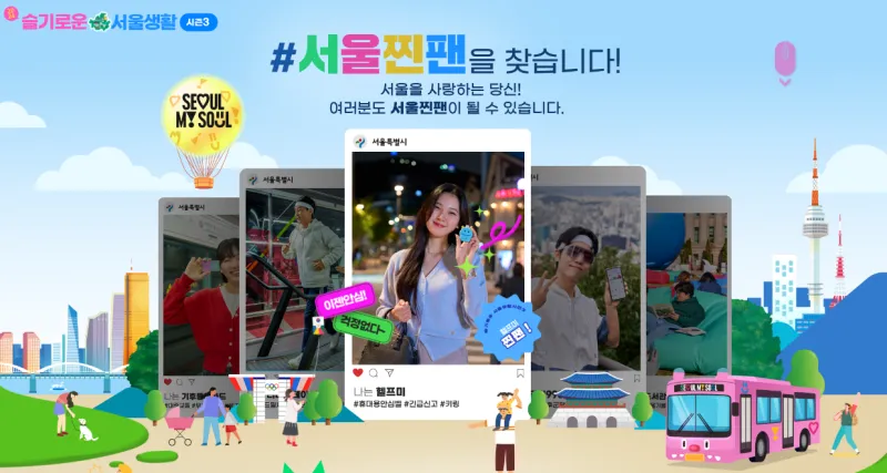 모두가 사랑하는 도시, 서울에 진심인 사람들 집합🌈 <서울 찐팬을 찾습니다> 이벤트 참여하고 선물도 받아가세요🎁 |