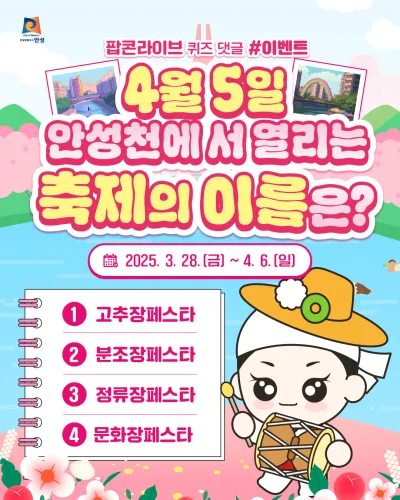 [이벤트] 4월 5일 안성천에서 진행하는 행사 이름은?! (3/28~4/6)