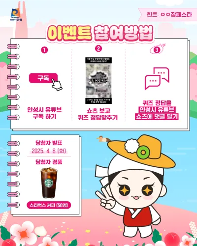 #안성 #안성시 #문화도시 #안성여행 #경품이벤트 #이벤트 #팔로우이벤트 #퀴즈이벤트 #SNS이벤트 #유튜브이벤트 #스타벅스 #커피 #문화장페스타 #팝콘라이브
