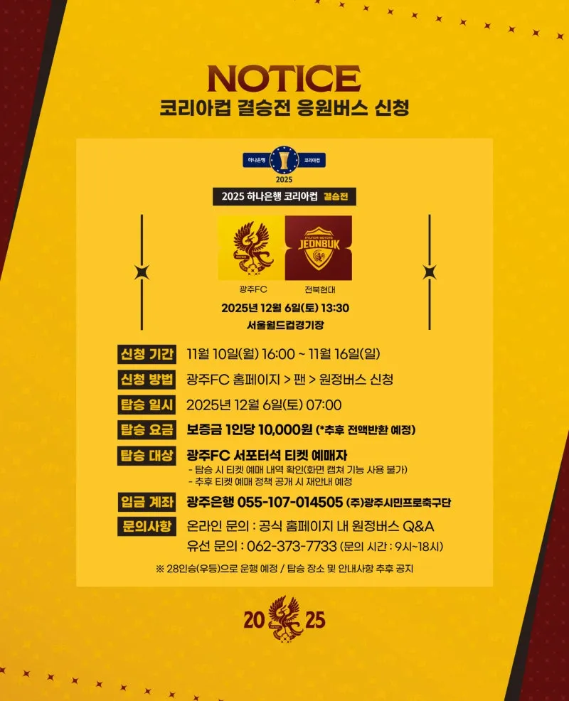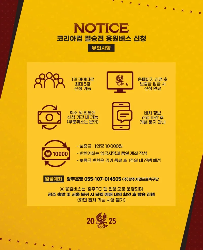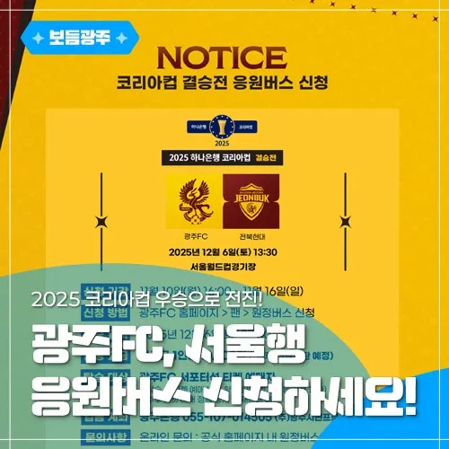 2025 코리아컵 우승으로 전진! 광주FC, 서울행 응원버스 신청하세요!