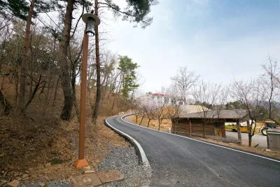 야외에는 숲속 산책로와 계곡이 함께 있어 계절에 따라 다양한 자연 풍경을 느낄 수 있다는 특징을 가지고 있습니다.