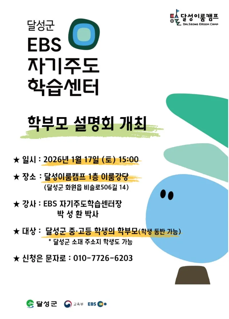 달성군에서 'EBS 자기주도 학습센터' 운영과 관련한 학부모 설명회를 개최합니다!