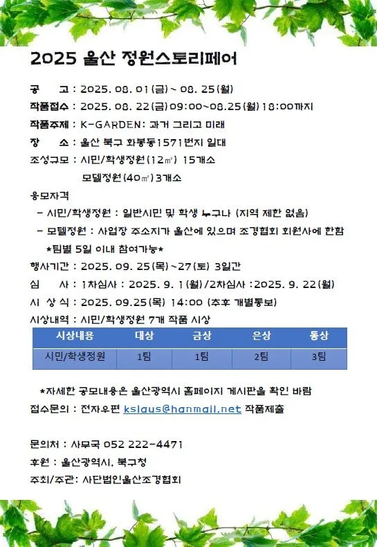 2025 울산 정원스토리페어 시민/학생 정원, 모델정원 공모전