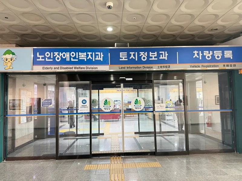 1층 접수창구 번호표 뽑는 곳에 바로 위치해 있어요.