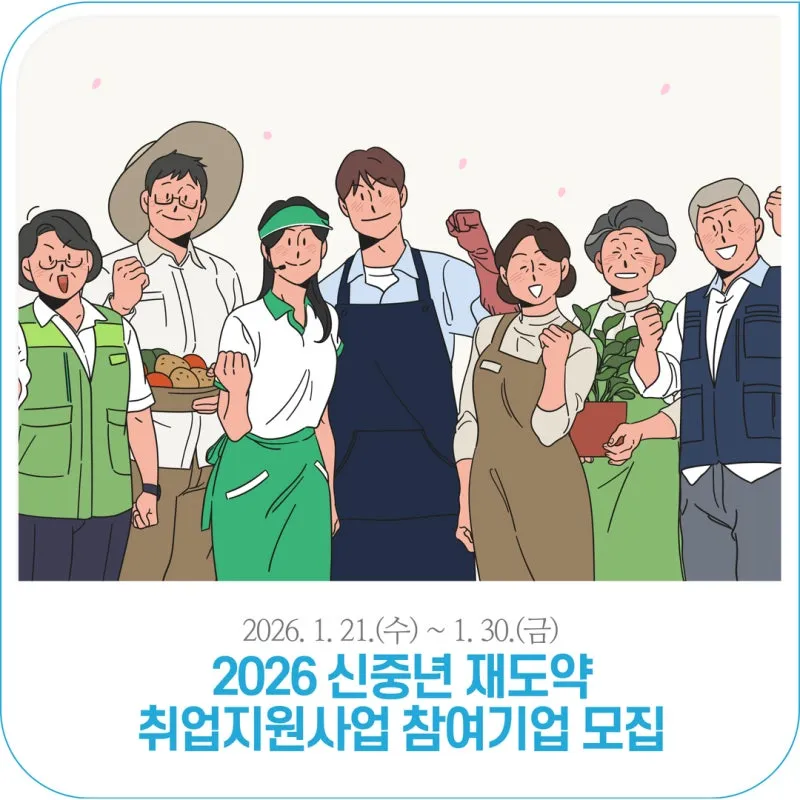 2026년 신중년 재도약 취업지원사업 참여기업 모집 | 2026. 1. 21.(수) ~ 1. 30.(금)
