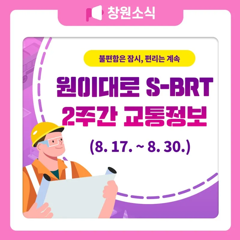 창원 원이대로 S-BRT 설치공사 2주간 교통정보 안내