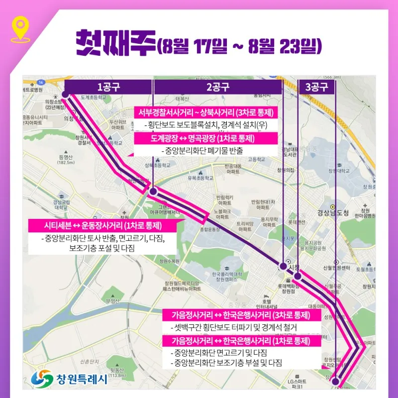 #창원 #창원시 #창원특례시 #SBRT #창원시공사 #우회도로안내 #sbrt설치공사 #상북사거리 #명곡광장 #시청사거리 #상남사거리 #sbrt설치공사공정계획