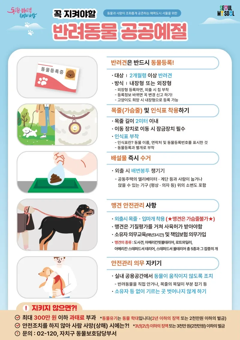 · 맹견은 입마개 착용 + 책임보험 가입 필수