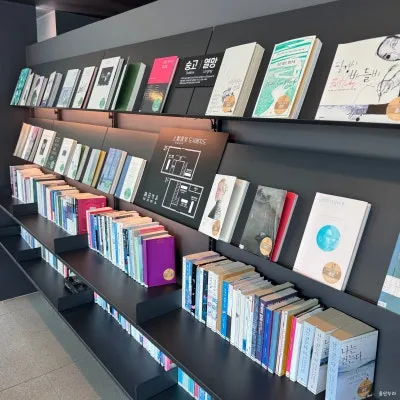 입구 맞은편, 1·2층 중간층 위치한 ‘지관서가’ 카페에서는 커피와 책을 함께 즐길 수 있어서, 데이트나 힐링 공간으로 손색없겠더라고요.