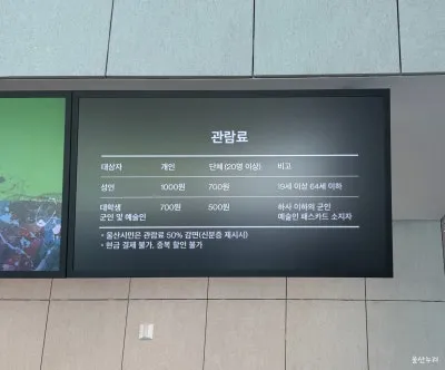울산시민 500원 / 19세 이하·65세 이상·장애인·다자녀 등은 무료