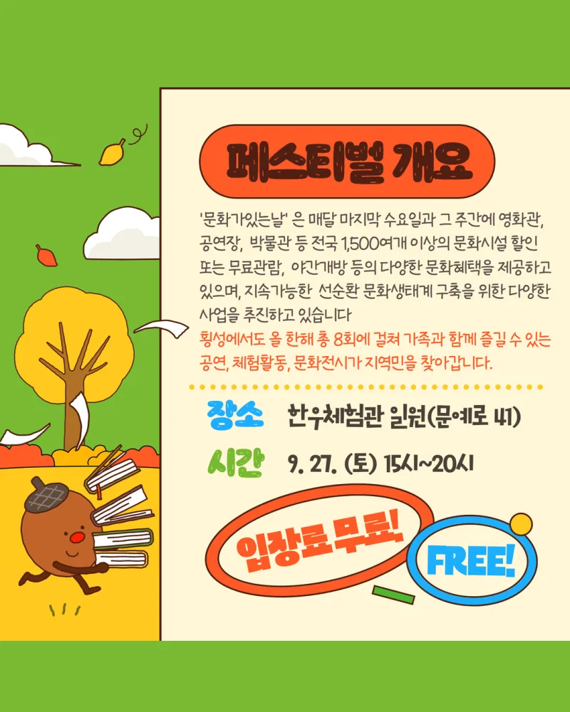 이번 9월에는 횡성이 예술로 가득 물듭니다. ⭐️