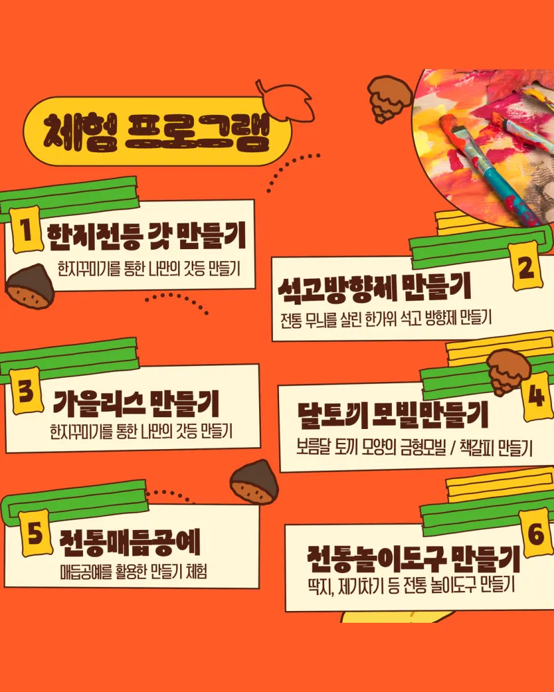참가비: 무료 (체험프로그램은 선착순 진행, 재료 소진 시 마감)