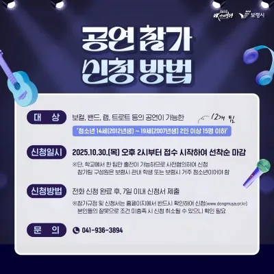 ‘제32회 보령시 청소년 가요제’가 개최됩니다. ✨