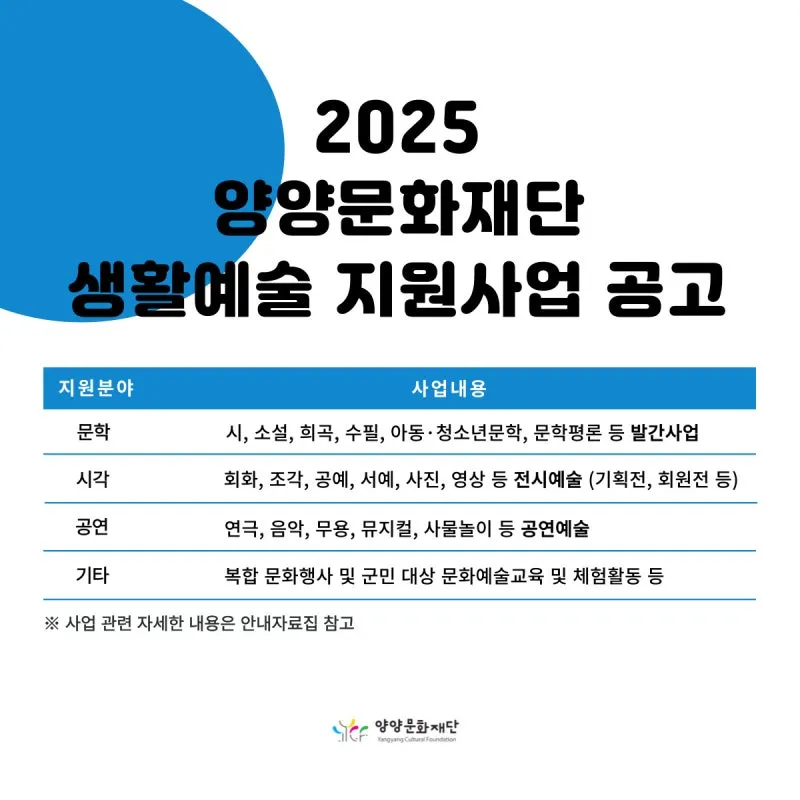 2025 양양문화재단 생활예술 지원사업 공고