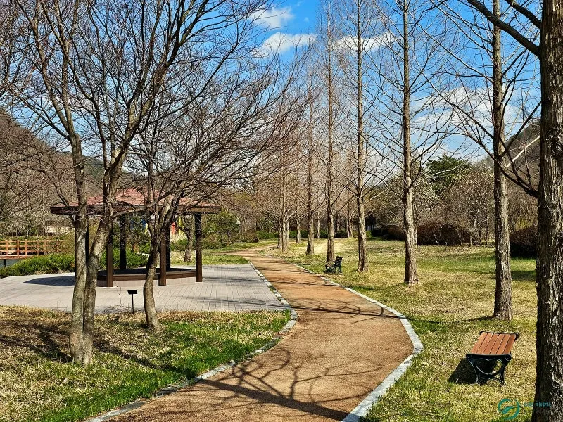 연못을 따라 난 메타쉐콰이어나무 사이 산책길이 호젓한 풍경이 그림처럼 예쁩니다.
