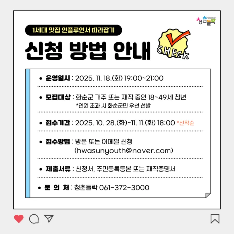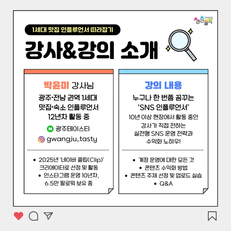 [청춘들락] '1세대 맛집 인플루언서 따라잡기' 교육생 모집