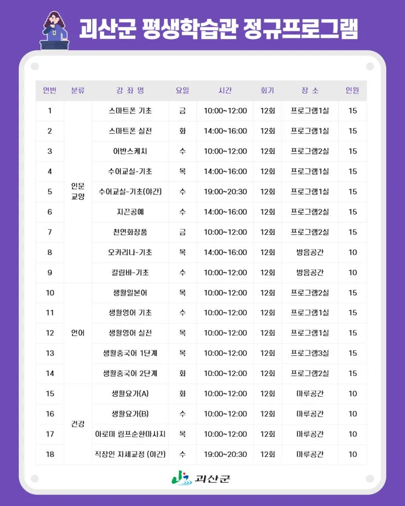 [괴산소식] 2026년 평생학습관 정규강좌 강사모집