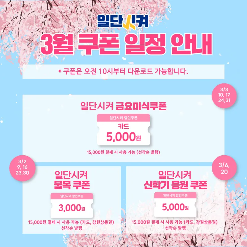 강원도형 민관협력 배달앱 '일단시켜' 3월 쿠폰 안내드립니다!