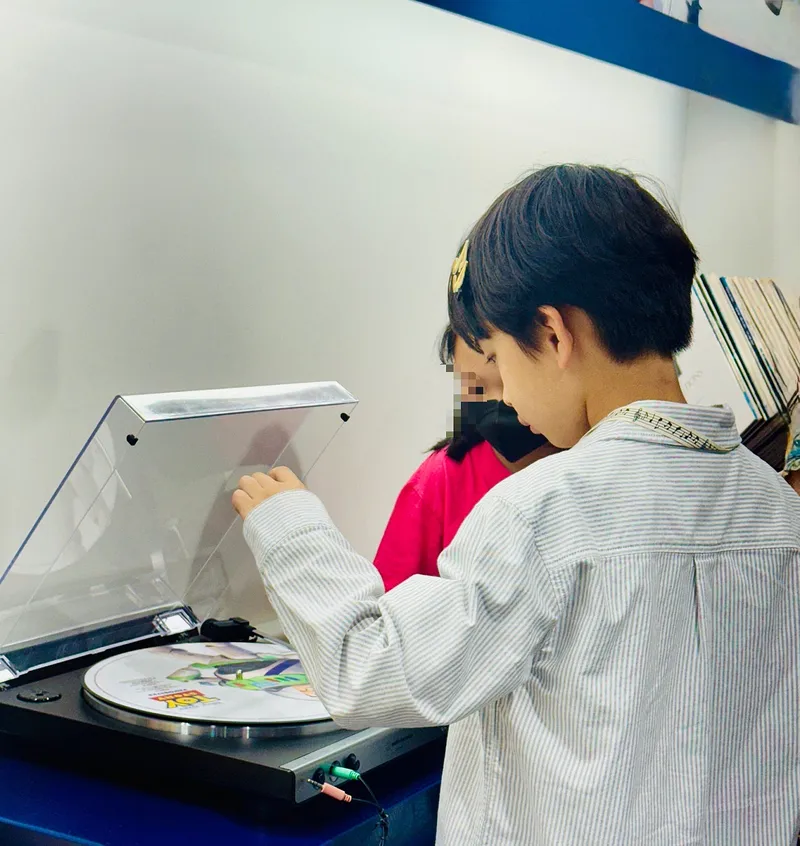 한쪽에는 추억의 LP 판을 직접 체험할 수 있는 공간도 있었는데,