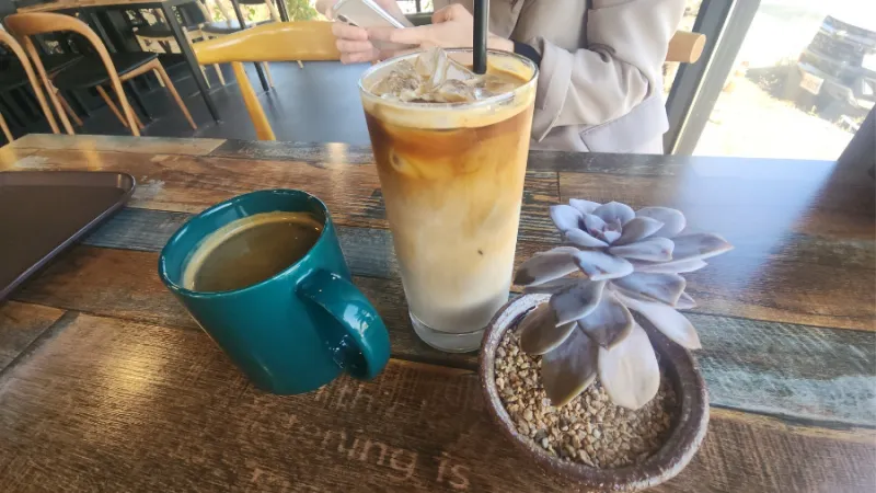 기본적인 메뉴를 판매하고 있어서 아메리카노, 카페라떼를 자주 이용하지만 미숫가루 라떼나 밀크쉐이크도 맛있어요. 단체 손님이 와도 공간이 따로 분리되어 있어서 미팅을 하기에도 좋구요. 대화하면서 다른 손님들에게 피해 안가게끔 공간 구성이 되어 있으니 모임을 하기에도 부담스럽지 않습니다.