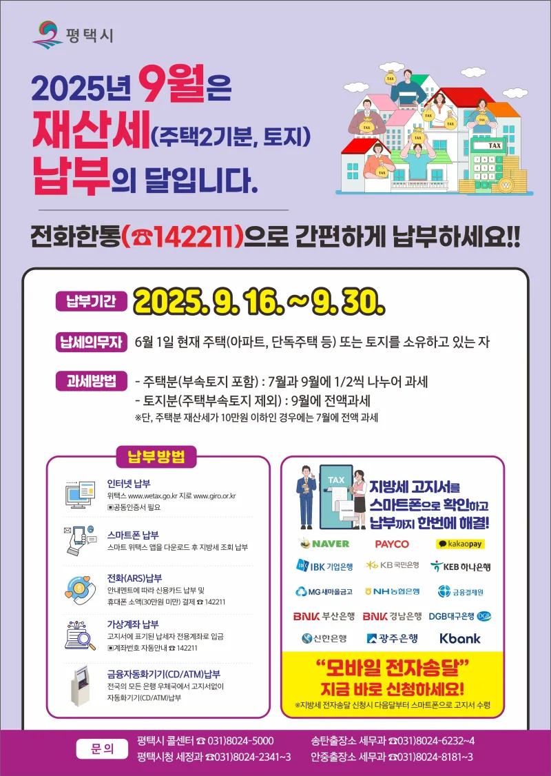 9월 정기분 재산세 납부 기간! 평택시민 꼭 알아야 할 납부 방법 총정리