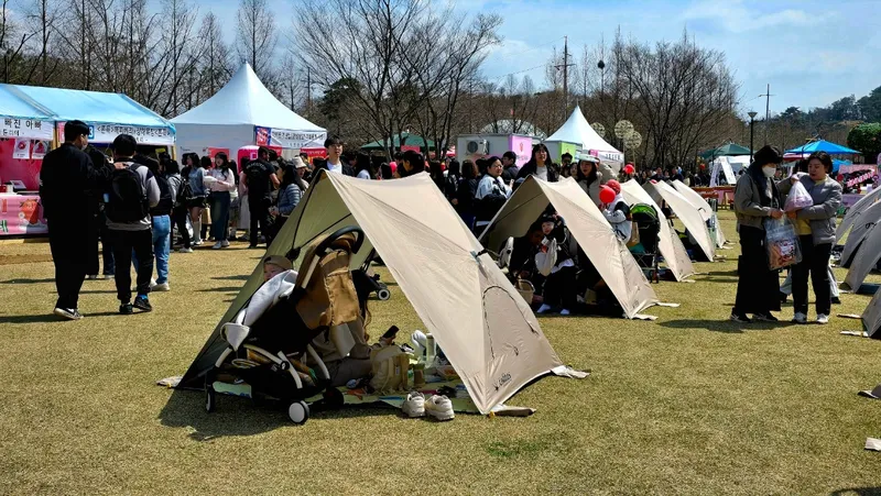 논산시민가족공원이 행사장으로 되어 있어 넓은 공원에 천막을 치고 쉼터를 마련했습니다. 가족들이 많이 찾아오는 축제를 감안해서 충분한 쉼터를 마련했네요.