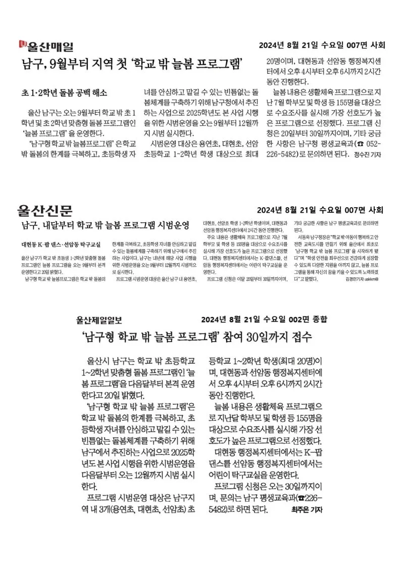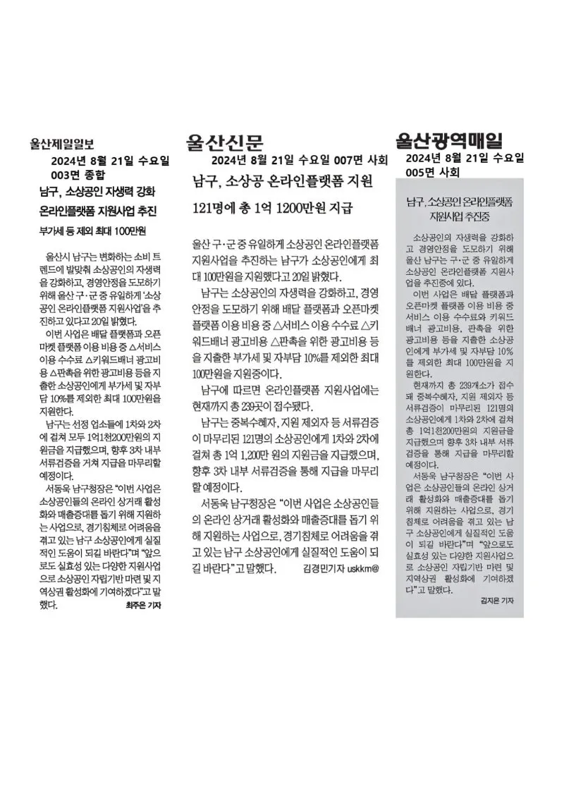 {"title":"[행복남구 오늘의신문] 적극적인 소통행정을 지속 추진하겠습니다 🗣️💬 (8월 21일 수요일)","source":"https://blog.naver.com/ulsan-namgu/223555243480","blogName":"울산광역시..","blogId":"ulsan-namgu","domainIdOrBlogId":"ulsan-namgu","nicknameOrBlogId":"울산광역시남구","logNo":223555243480,"smartEditorVersion":4,"meDisplay":true,"lineDisplay":true,"outsideDisplay":false,"cafeDisplay":false,"blogDisplay":false}