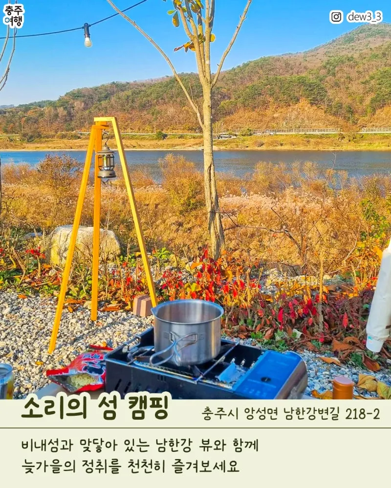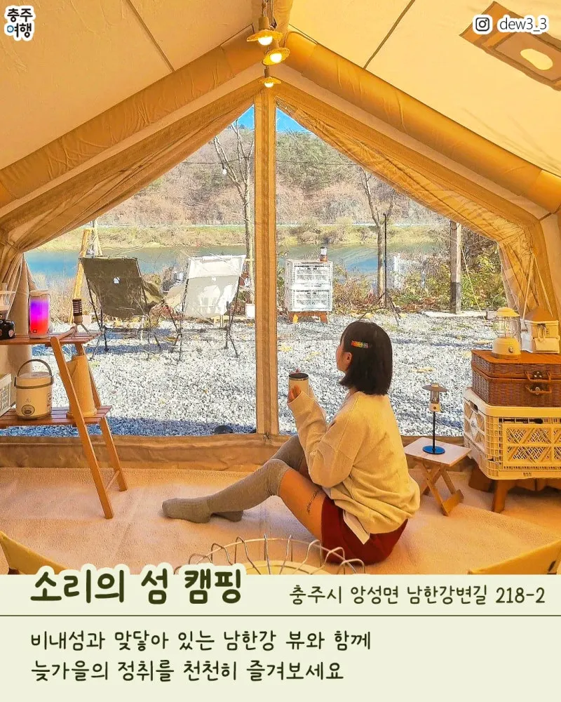 충주 늦가을 감성 캠핑장 모음 4ㅣ카누캠핑장, 소리의섬캠핑, 잭슨글램핑, 햇살아래캠핑장