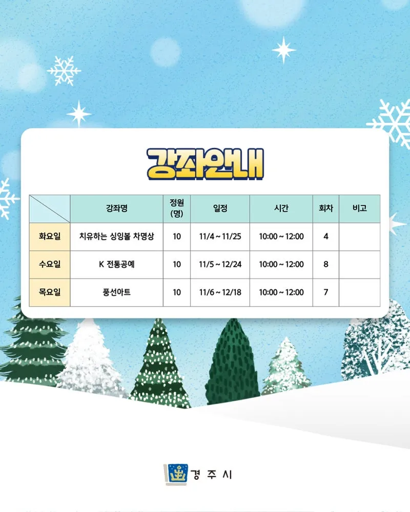 #경주문화센터 #경주강좌 #경주겨울강좌