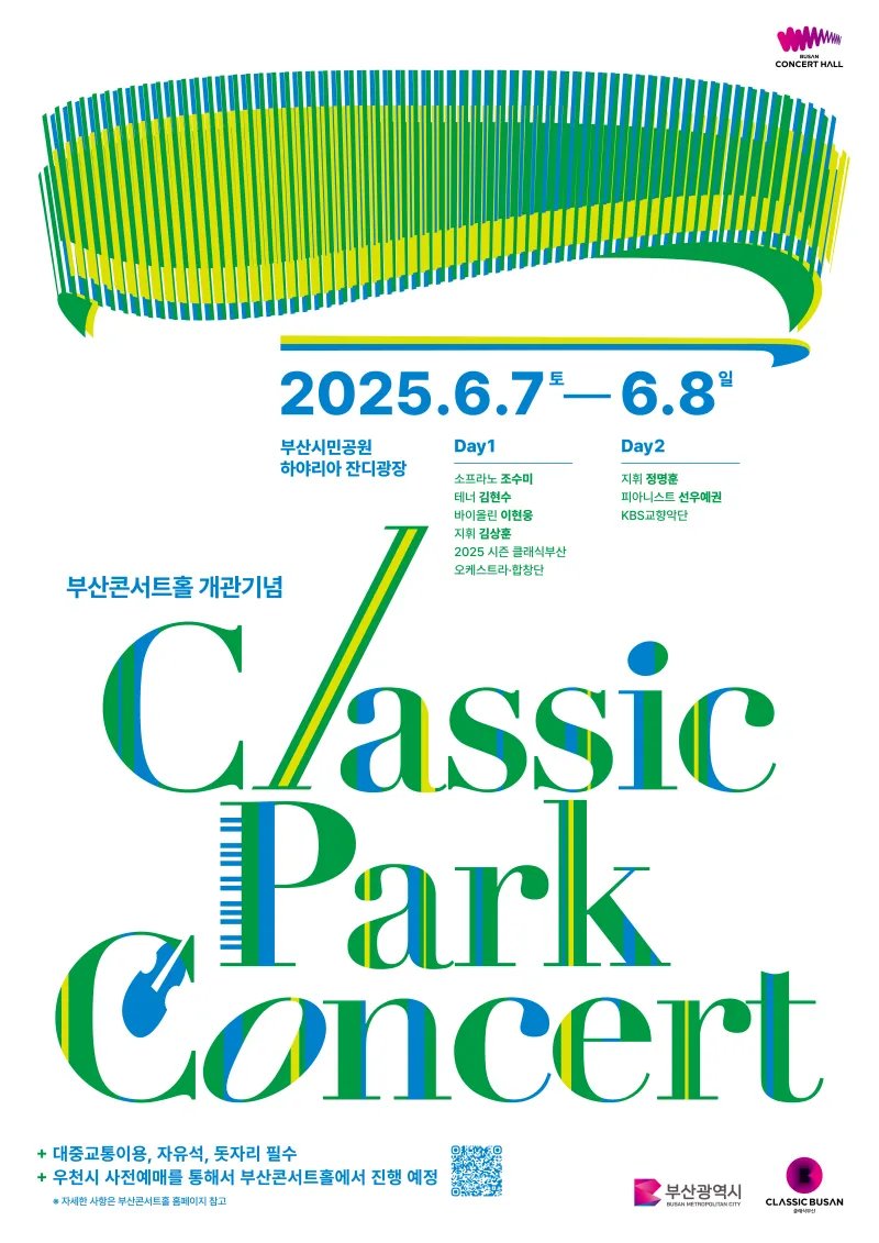 부산시 클래식부산은 부산콘서트홀 개관(6월 21일)에 앞서 6월 7일, 8일 양일간 오후 7시마다 부산시민공원 내 하야리아 잔디광장에서 「2025 클래식 파크콘서트」를 개최합니다.