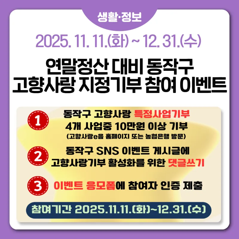 연말정산 대비 동작구 고향사랑 지정기부 참여 이벤트 안내✨