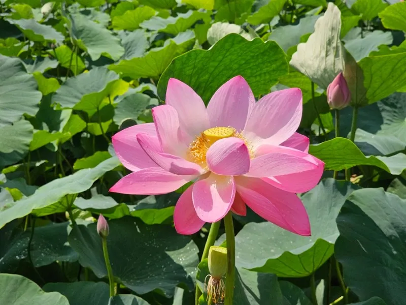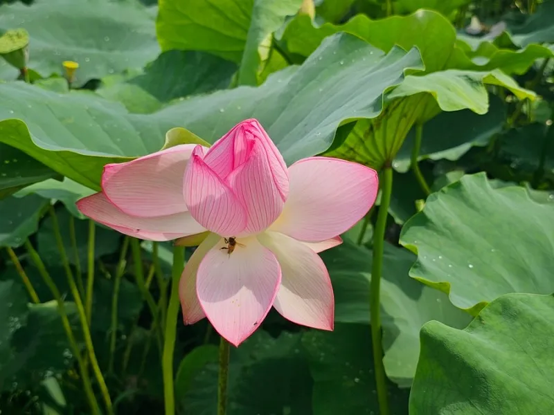 수련 밭 한가운데 누워있는 이 녀석은 공부가 하기 싫은 것 같죠? 그런데 재미있게도 뒤쪽에 한산중학교가 보입니다. 혼자서 한산중학교 학생인가?라고 하면서 웃으며 지나쳤습니다. 그냥 연꽃과 수련만 있는 것보다 볼거리가 더 있어서 좋습니다.