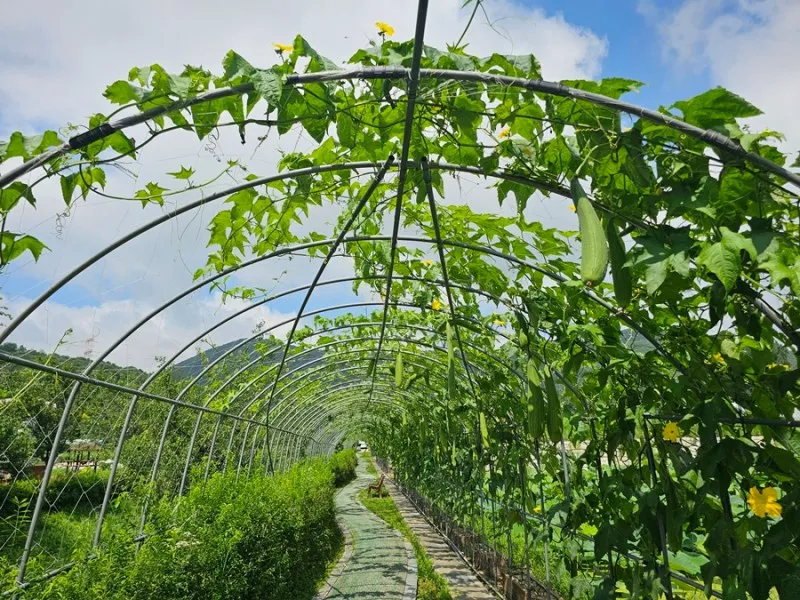 내동마을에 갈 때마다 한 번씩 지나는 터널입니다. 수세미가 열리는 터널인데 지금은 꽃도 함께 피어서 보기 힘든 수세미 꽃도 볼 수 있습니다.