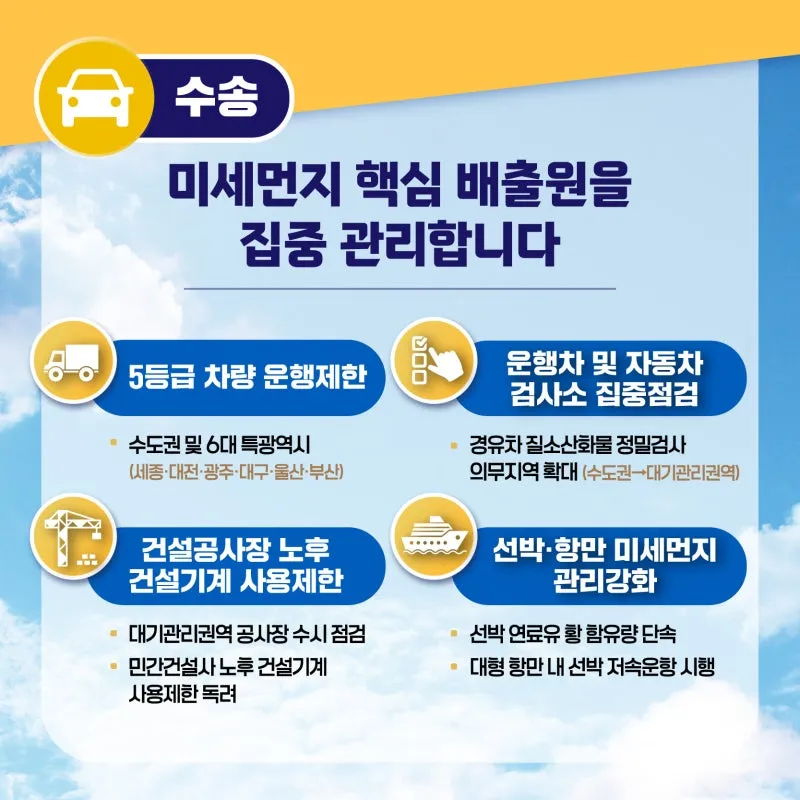수송, 산업‧발전분야 핵심배출원 관리 등