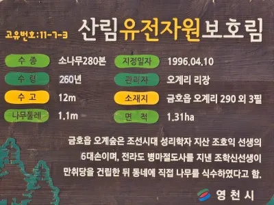 이 일대에 소나무 280본이 있습니다. 지정일은 1996년 4월 10일자로 수령은 260여 년이 된 오래된 나무입니다.